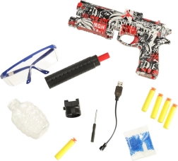 Elektrická pištoľ na zábavu strieľa dvoma typmi munície – penovými nábojmi a hydrogelovými guľôčkami. Balenie obsahuje guľôčky na samostatnú prípravu – guľôčky je potrebné namočiť do vody na 3–4 hodiny, aby sa zväčšil ich objem.