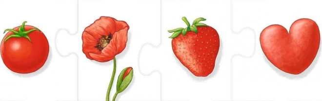Každá mini skladačka predstavuje jednu farbu s tematickými obrázkami, ktoré si deti ľahko zapamätajú a pomenujú.