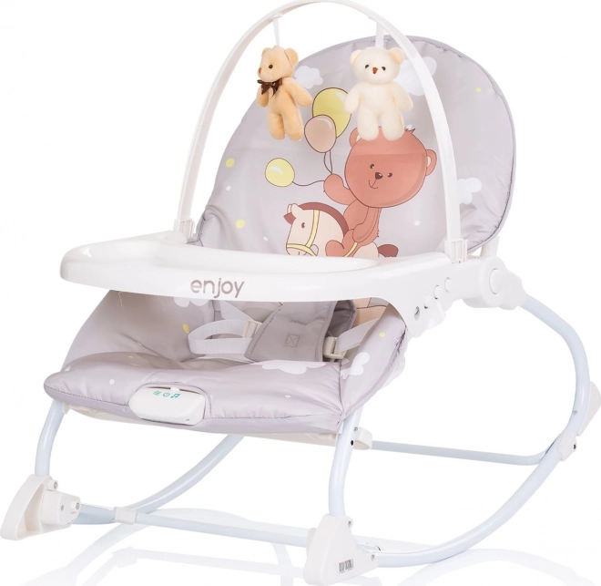 Detské hojdacie kresielko Enjoy od výrobcu Chipolino je ideálne pre hranie aj spánok. Závesné hračky a príjemné melódie v kombinácii s upokojujúcimi vibráciami zaručene uspia vaše dieťatko.