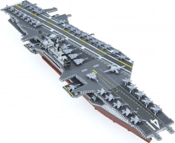 Hotový model lietadlovej lode s miniatúrnymi lietadlami na palube skvele vynikne ako dekorácia aj zberateľský kúsok.