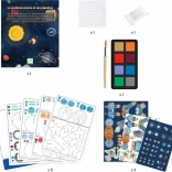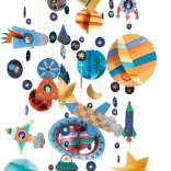 Kreatívna sada na výrobu veľkej dekorácie na tému slnečná sústava. Skvelá dekorácia na spoznávanie planét v našej slnečnej sústave a objavovanie ich krásy. Deti namaľujú planéty a hviezdy farbami. Po zaschnutí ich nasunú na drôt a vytvoria prstence podľa polohy planét v slnečnej sústave. Potom upevnia prstence na závesné kotúče a doplnia ďalšie dekoratívne prvky (rakety, kométy, hviezdy atď.). Súčasťou balenia je ilustrovaný návod na zostavenie. Rozmery výrobku: 25 × 25 × 40 cm.