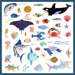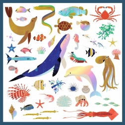 Rozvíjajte fantáziu s oceánskymi motívmi, ktoré žiaria vďaka metalickým plochám. Samolepky môžete použiť tak, ako sú, alebo ich využiť na dotvorenie a dokončenie výkresov. Dvojité kópie listov zabezpečia, že sa k obľúbeným motívom môžete vracať znova a znova.