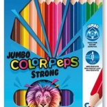 Sada detských pasteliek MAPED Color'Peps Strong Jumbo prináša 12 sýtych farieb v robustnom prevedení s ultra odolnou tuhou. Vďaka trojhrannému telu sa pastelky pohodlne držia a ľahko sa strúhajú, čo je ideálne pre malé ruky a prvé kresliarske pokusy.