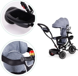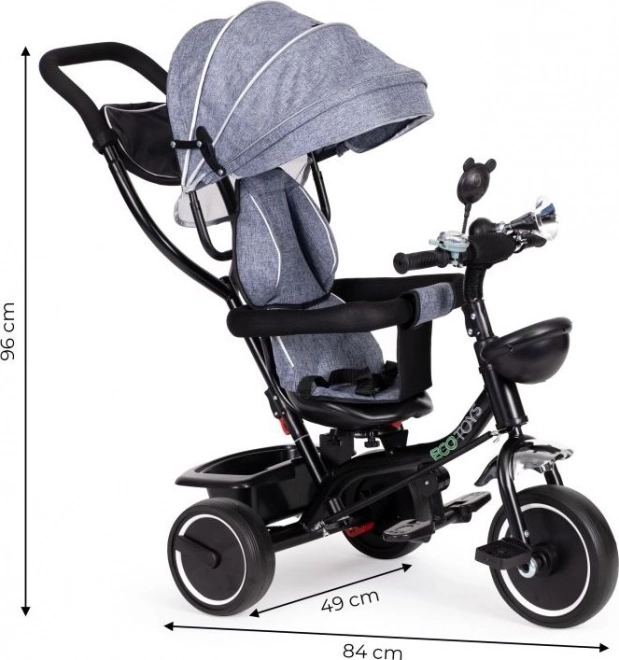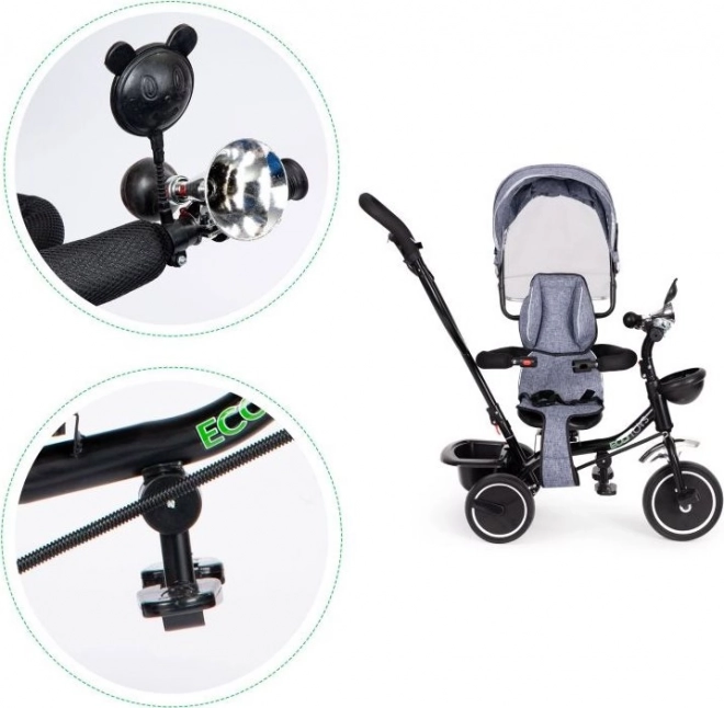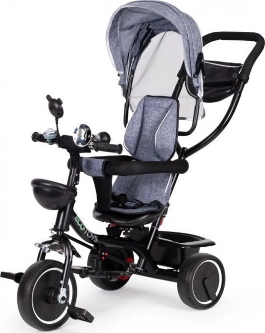 Trojkolka ECOTOYS zabezpečuje pohodlie vďaka mäkkému operadlu a bezpečnostným pásom. Odnímateľná strieška chráni pred slnkom či dažďom.