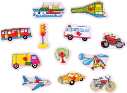 Puzzle podporujú kognitívne schopnosti a učia deti rozpoznávať farebné tvary a dopravné prostriedky.