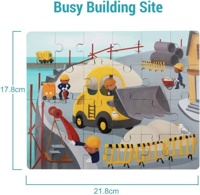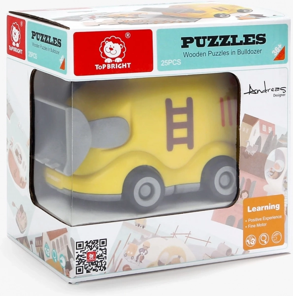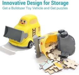 Objavte chytrú hračku, ktorá spája radosť z hrania s učením. Drevené puzzle s motívom dopravných prostriedkov (stavenisko) je schované priamo v plastovom buldozéri. Ten má hladké, bezpečné spracovanie, kolieska na jazdu a otváracie spodné veko, do ktorého deti pohodlne uložia puzzle alebo svoje poklady.