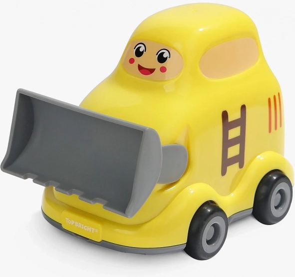 Buldozér z odolného plastu má hladké hrany, jazdí na kolieskach a ponúka praktické otváracie veko na odkladanie dielikov alebo drobných pokladov.