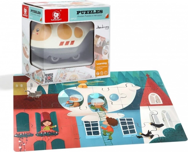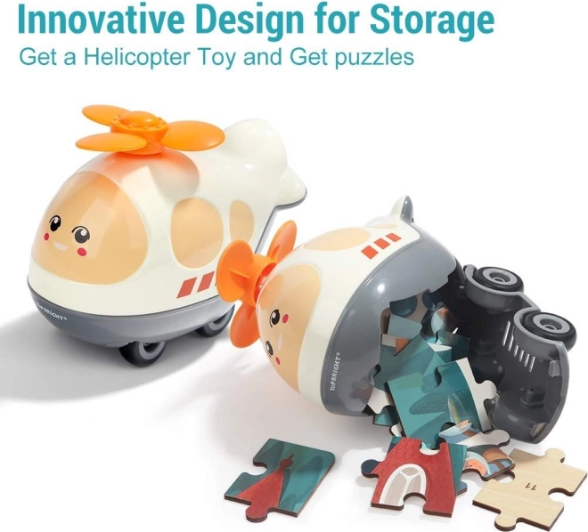 Objavte chytrú hračku 2 v 1: drevené puzzle s motívom dopravných prostriedkov a plastový vrtuľník s otváracím vekom na uloženie dielikov aj ďalších pokladov. Dieliky puzzle sú číslované, takže sa deti ľahko zorientujú a skladanie je zábavnejšie aj poučné.