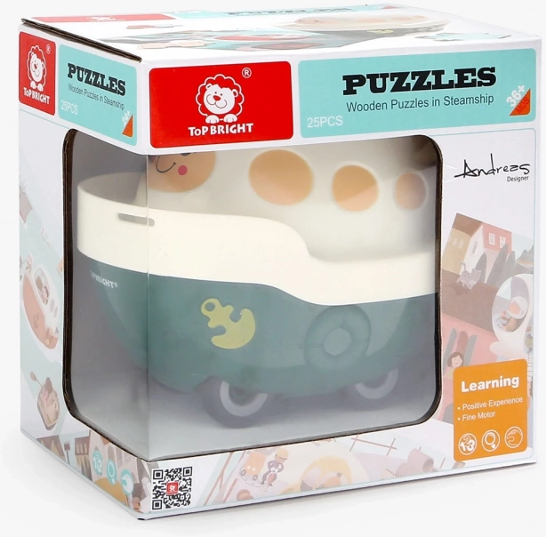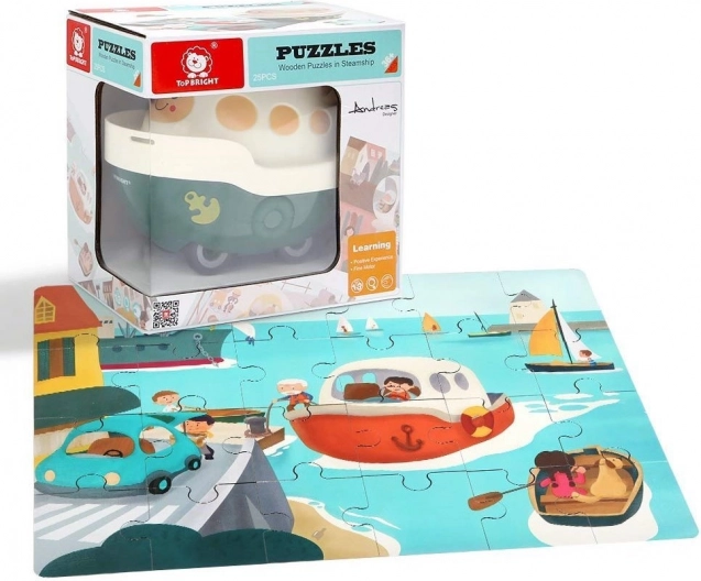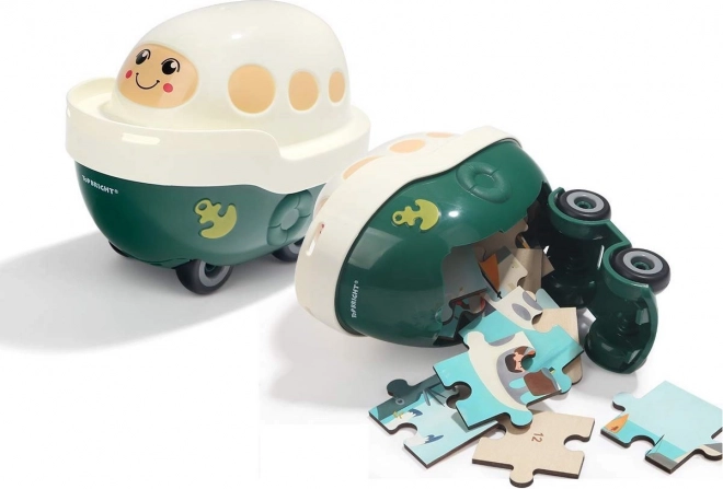 Plastová loďka s roztomilou tváričkou je plne funkčná hračka. Spodné viečko sa otvára a pojme celé puzzle alebo iné malé poklady.