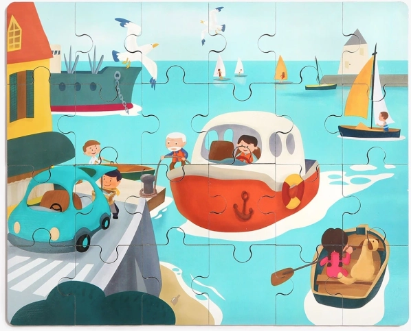 Toto originálne 2v1 spája zábavu z hrania sa s vozidlami a radosť zo skladania. Drevené puzzle s dopravnou tematikou podporuje sústredenie, jemnú motoriku a rozvoj logiky. Loďka je samostatná hračka na kolieskach a vo vnútri ukrýva bezpečný priestor na uloženie dielikov alebo detských pokladov.
