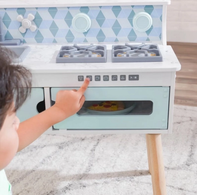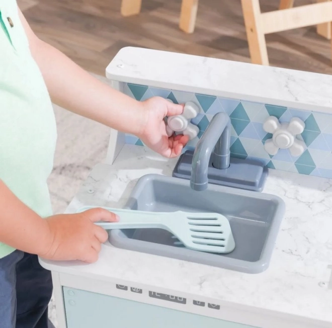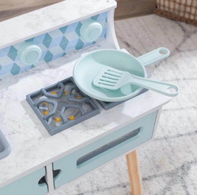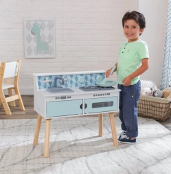 Drevená detská kuchynka KIDKRAFT Play & Put Away je premyslená herná súprava, ktorá prináša radosť z varenia v bezpečnej podobe. Realistické prvky, ako sú varné platničky s dvomi ovládacími gombíkmi, ktoré pri otáčaní príjemne cvakajú, a otváracie dvierka, podnecujú kreatívnu hru a rozvoj sociálnych zručností.