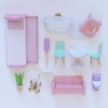 S dvoma poschodiami, dvoma izbami a samostatnou kúpeľňou ponúka domček dostatok priestoru na hru s bábikami a doplnkami. Priložených 12 dielikov nábytku umožňuje okamžite začať a meniť usporiadanie podľa fantázie.
