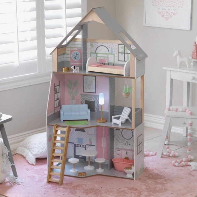 Drevený domček pre bábiky KidKraft Alina prináša deťom realistické prostredie na rozvoj fantázie. Tri premyslené podlažia zahŕňajú priestrannú kuchyňu s jedálenským kútom, obývaciu izbu s verandou, útulné podkrovie so spálňou a druhú kúpeľňu. Vďaka štíhlemu pôdorysu sa skvelo hodí aj do menších detských izieb.