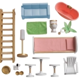 Okamžite pripravené na hranie – posteľ, pohovka, vanička, stolíky, stoličky a ďalšie miniatúry pre realistické zariadenie každej miestnosti.
