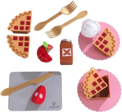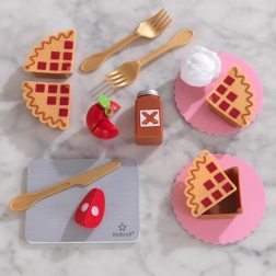 Realistické doplnky ako plátky koláča, tanieriky, príbory a fľaša omáčky podporujú napodobňovanie skutočného varenia a spoločenskú hru. Odolné prevedenie značky KIDKRAFT je navrhnuté na každodenné hranie a jednoduchú údržbu.