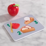 Kartička s receptom zároveň slúži ako doska na krájanie – deti ľahko sledujú postup a hrou sa učia základy varenia.