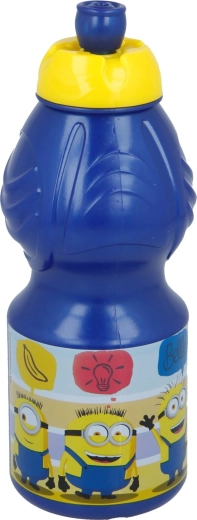 Detská fľaša na pitie s motívom Mimoni s objemom 400 ml je ideálna do školy, na výlety aj šport. Ponúka ergonomický tvar, protišmykový úchop a bezpečnostnú zátku proti úniku. Je bez BPA a ftalátov a ľahko sa čistí.