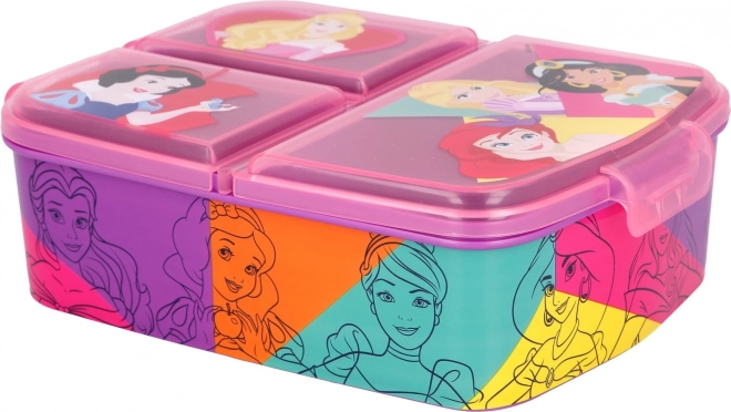Praktický desiatový box s motívom DISNEY Princezné ponúka tri oddelené priehradky na prehľadné uloženie jedla. Je vyrobený z odolného materiálu, neobsahuje BPA a vďaka oficiálnej licencií poteší každú malú princeznú. Ideálny do školy, na ihrisko aj na výlety.