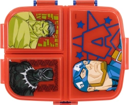 Obedový box Avengers je vyrobený z odolného plastu, vďaka čomu vydrží nárazy a bežné opotrebovanie. Dve poschodia umožňujú pestrejšie usporiadanie pokrmov, kde hlavná komora je určená pre väčšie jedlá, zatiaľ čo horné poschodie poskytuje tri samostatné priehradky pre menšie pochutiny.