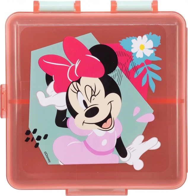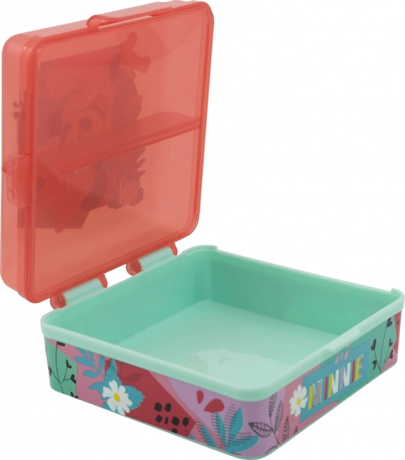 Štvorcový Multi Box na desiatu Minnie Mouse je ideálnym spoločníkom pre malých školákov aj výletníkov. Vďaka praktickým priehradkám umožňuje usporiadať desiatu do viacerých chodov bez miešania chutí. Deti si ho vďaka dizajnu rady berú všade so sebou.