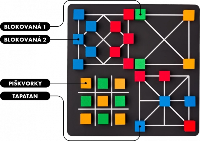 - Piškvorky Tapatan: Strategická hra pre dvoch hráčov. Cieľom je zložiť rad 3 kociek jednej farby. Hráči sa striedajú v pokladaní a posúvaní kociek.