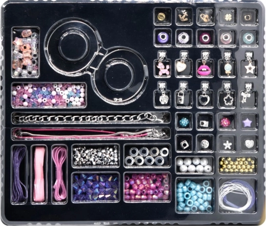 Vytváraj jedinečné náramky presne podľa svojho štýlu. Táto bohato vybavená sada ponúka množstvo príveskov a doplnkov, vďaka ktorým ľahko skombinuješ farby, tvary aj motívy. Skvelá zábava pre začiatočníkov aj pokročilých, ktorá rozvíja kreativitu a jemnú motoriku.