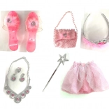 Očarujúci ružový set pre malé princezné premení každé popoludnie na rozprávkové dobrodružstvo. Deti si zamilujú kombináciu ľahkej sukničky, rozkošných črievičiek a kabelky, ktorá doplní celý kráľovský outfit. Skvelé na prezliekanie, domáce divadlo, karneval aj narodeninové oslavy.