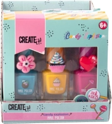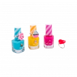 Rozžiarte deťom každý deň zábavnou sadou lakov na nechty s prstienkami CREATE IT!. V balení nájdete 3 farebné laky a 3 rozkošné prstienky (kvet, srdiečko, cupcake), ideálne na kreatívny nail art a prvé experimenty s kozmetikou. Bezpečné pre deti od 6 rokov, v hravom darčekovom balení – perfektné ako malý darček alebo na párty.