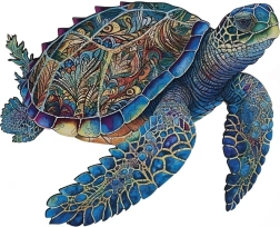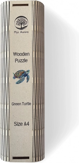 Drevené puzzle Green Turtle A4 prinášajú nezabudnuteľný zážitok zo skladania vďaka neobvyklým, takmer umeleckým tvarom jednotlivých dielikov. Každý kus je jedinečný a niektoré dieliky sú vyrezané do podoby rôznych zvierat a rastlín, čo robí skladanie zábavnejším a vizuálne atraktívnym. Po dokončení získate kompaktný obraz vo veľkosti A4, ktorý sa skvele hodí ako dekorácia do interiéru.