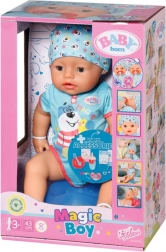 Bábika BABY born chlapček s magickým cumlíkom prináša deťom autentický zážitok zo starostlivosti o bábätko. Stačí pootočiť cumlík v pusinke a bábike sa okamžite zavrú alebo otvoria oči – a to v akejkoľvek polohe. Bez cumlíka sa pri položení na chrbát oči automaticky zavrú. Končatiny a hlavička sú ľahko pohyblivé pre pohodlné prezliekanie a hranie.