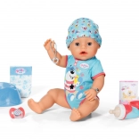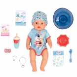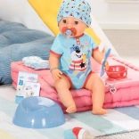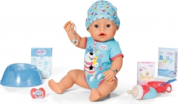 Objavte realistickú bábiku BABY born chlapček 43 cm s magickým cumlíkom, ktorá otvára a zatvára oči po pootočení cumlíka v akejkoľvek polohe. Ponúka 10 realistických funkcií bez batérií – pije vodu, je kašu, ciká do plienky alebo na nočník, roní slzičky a vie aj kakať. Mäkké telíčko Soft Touch, ľahko pohyblivé končatiny a bohaté príslušenstvo zaistia hodiny kreatívnej hry a rozvoj empatie.