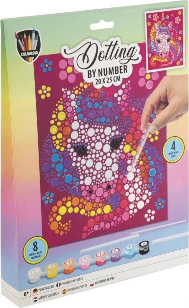 Premente voľné chvíle na tvorivý zážitok. Plátno s očíslovanými bodkami vás povedie krok za krokom – každé číslo zodpovedá jednej konkrétnej farbe. Výsledkom je pôsobivý motív jednorožca, ktorý si s hrdosťou vystavíte.