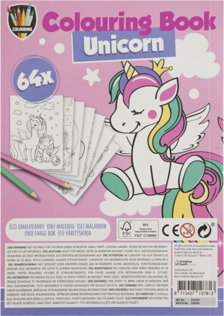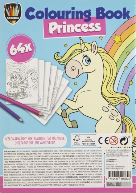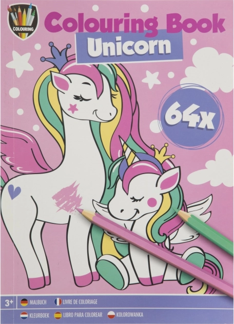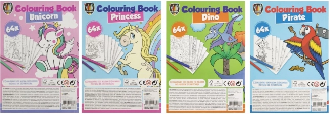 Kniha omaľovánok A5 so 64 kreatívnymi obrázkami ponúka zábavu pre deti. Témy ako Jednorožec, Princezné, Dino a Piráti inšpirujú malých umelcov.