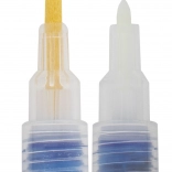 Jemný hrot je ideálny na detaily, kontúry a písmo, zatiaľ čo širší hrot ľahko vyfarbí plochy a dodá výrazné krytie. Pre najlepší výsledok povrch pred aplikáciou očistite a nové popisovače najprv aktivujte a vyskúšajte na papieri.