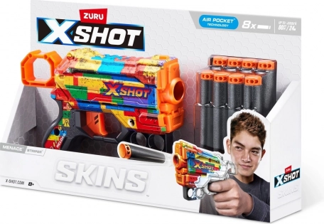 Objavte akčnú zábavu s blasterom X-Shot Skins Menace – malý rozmerom, veľký výkonom. Vďaka technológii šípok so vzduchovými kapsami získate rýchlejší let, stabilnú trajektóriu a presné zásahy až na 27 metrov. Farebné „skins“ prevedenie umožňuje vyjadriť vlastný štýl a odlíšiť sa v každej bitke.