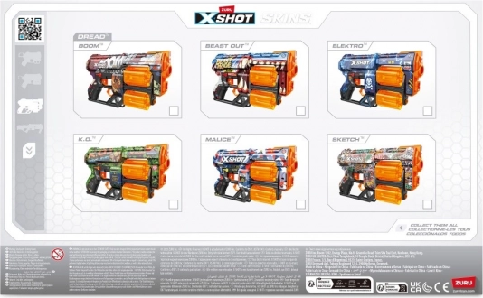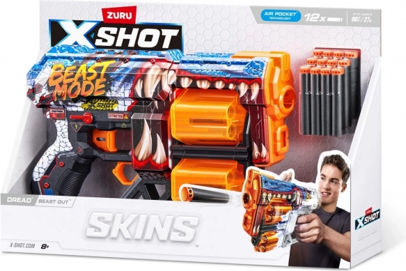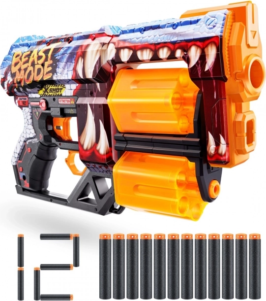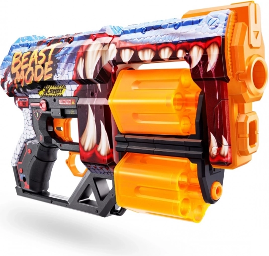 Pripravte sa na adrenalínové súboje s blasterom X-SHOT SKINS DREAD vo výraznom skine beast mode. Dva nezávislé rotačné bubny poskytujú dokopy 12 rýchlych výstrelov – len čo jeden vyprázdnite, stačí prepnúť a pokračovať v akcii bez zdržovania. Ergonomické prevedenie a ľahká konštrukcia zabezpečujú pohodlné držanie aj pri dlhšom hraní.