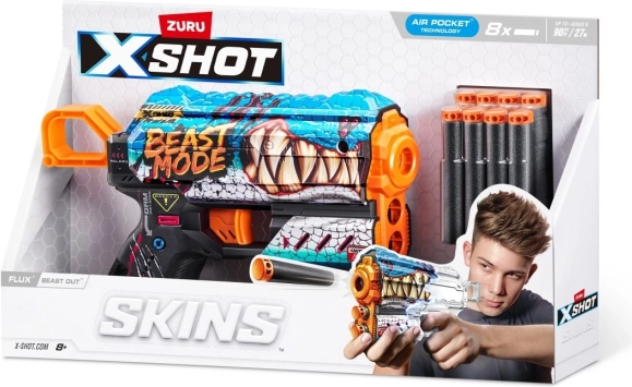 X-Shot Skins Flux je kompaktná pištoľ na šípky, ktorá spája atraktívny dizajn a spoľahlivý výkon. Vďaka technológii šípok so vzduchovými vreckami letia stabilne a triafajú cieľ s vysokou presnosťou. Ideálna na dynamické bitky na záhrade, v parku aj doma.