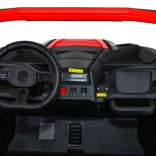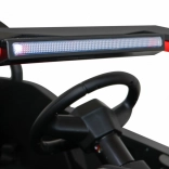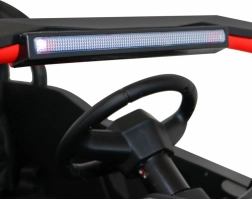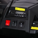 Interiér poteší vetraným sedadlom z eko kože s bezpečnostnými pásmi a 3-stupňovým posuvom (60×26×32 cm). Deti si užijú hudbu cez MP3, USB, AUX aj Bluetooth a zábavné zvuky vo volante. Rodičia majú kontrolu s ovládačom 2,4 GHz (3 rýchlosti, bezpečnostné tlačidlo Stop). Praktické sú otváracie dvere, ukazovateľ nabitia a realistické štartovanie so zvukom motora.