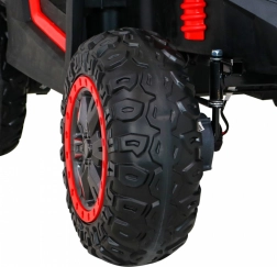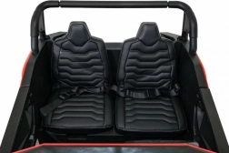 Terénne buggy pre dvoch malých vodičov kombinuje vysoký výkon, pohodlie a bezpečnosť. Štyri motory 200 W zabezpečujú istý záber všetkých kolies, plynulý štart chráni deti pred trhnutím a dvojica zadných tlmičov zvyšuje komfort na nerovnostiach. Veľké EVA penové kolesá 35×15 cm nehučia a dobre tlmia, zatiaľ čo LED svetlá vpredu aj vzadu zlepšujú viditeľnosť.