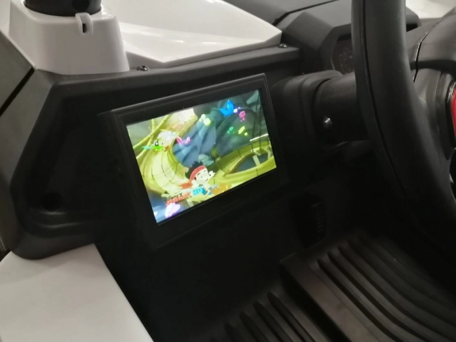 Riadiaci panel obsahuje volant a malý displej, ktorý zobrazuje animovaný obsah pre multimediálnu zábavu.