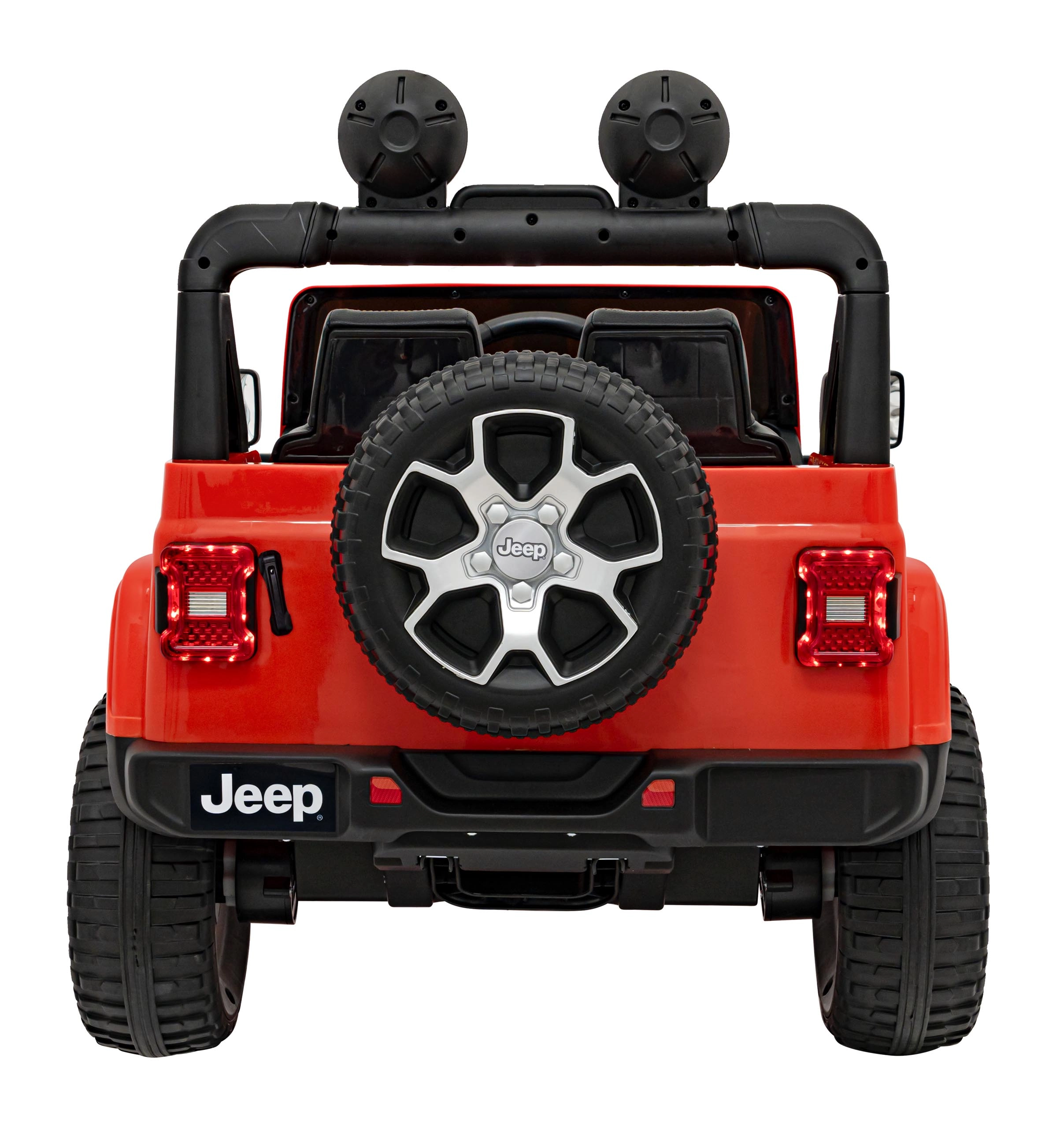 LED svetlomety vpredu a na ráme, veľké terénne EVA kolesá a detaily JEEP dodajú autu autentický off‑road štýl aj viditeľnosť.