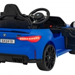 Štýlové detské elektrické autíčko BMW M4 v modrej farbe ponúkne realistickú jazdu s dvojicou motorov 2×35 W, 12V/7Ah batériou, otváracími dverami a LED svetlami. Vďaka plynulému rozjazdu, penovým kolesám EVA a diaľkovému ovládaču 2,4 GHz s bezpečnostným tlačidlom STOP je jazda pohodlná a bezpečná. Audio panel s Bluetooth, USB, MP3 a AUX poteší malých vodičov obľúbenou hudbou.