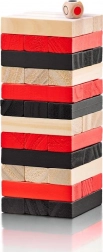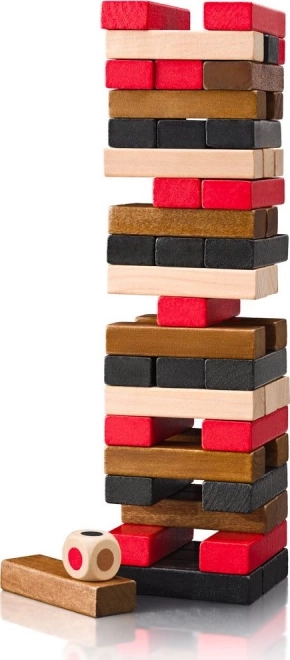 Stavajte, vyťahujte a balansujte. Farebné drevené kvádre a kocka pridávajú nové výzvy a premenia každé kolo na napínavú show.