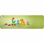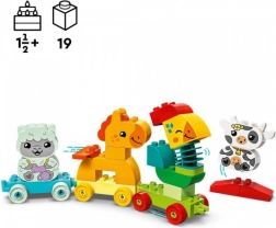 LEGO DUPLO zvierací vláčik poteší všetkých malých milovníkov zvierat a vozidiel. Deti postavia kohúta, koňa, ovečku a kravičku, posadia ich do farebne zladených vagónikov a vydajú sa na dobrodružnú jazdu. Vďaka veľkým kockám sa set ľahko skladá a podporuje učenie hrou.