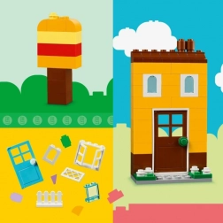 • Stavebnica domčekov LEGO® – Nádejní architekti a architektky od 4 rokov si so stavebnicou LEGO Classic Tvorivé domčeky vyskúšajú tvorenie, kombinovanie a prispôsobovanie 6 rozmanitých farebných domčekov• Stavanie domčekov – Stavebnica deťom umožňuje pridávať kocky, aby boli domčeky vyššie, a vymieňať dvere, okná, záhradky a množstvo ďalších prvkov. Inšpiruje malých staviteľov k vytváraniu vlastných návrhov a rozvíjaniu tvorivého stavania• Nekonečné tvorenie – Súčasťou je 8 tipov na stavanie, ktoré podnietia kreatívne stavanie podľa vlastnej fantázie a umožnia deťom experimentovať• Postavte si domčeky – V farebnej stavebnici nechýbajú okná, dvere, stromy, kvety a podložky na stavanie v rôznych štýloch, ktoré poskytujú ešte viac možností prispôsobenia• Tip na darček z kociek LEGO® – Stavebnicu možno donekonečna upravovať a predstavuje kreatívny a zábavný darček k narodeninám alebo pri akejkoľvek inej príležitosti pre deti• Intuitívny sprievodca stavaním – Deti môžu používať aplikáciu LEGO® Builder a vychutnať si pohlcujúci staviteľský zážitok s digitálnymi funkciami priblíženia a otáčania modelov v 3D a možnosťou ukladania stavebníc a zobrazenia postupu pri stavaní• Rozvíjanie zručností prostredníctvom stavania – Rad LEGO® Classic malým staviteľom otvára bránu do sveta neobmedzeného hrania a kreatívneho sebavyjadrenia a túto stavebnicu možno kombinovať so sadami 11034, 11036 a 11037 (predávajú sa samostatne)• Stavebnica LEGO® s 850 dielikmi – Modrý domček z pôvodných 6 modelov meria viac než 15 cm na výšku, no malí stavitelia môžu domčeky zväčšovať aj zmenšovať podľa ľubovôle