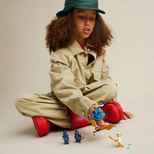 Zažite jedinečné LEGO dobrodružstvo so stavebnicou Ninjago: Jayov bojový stroj. Figúrka mecha má pohyblivé ruky, nohy a trup, je vybavená veľkým zlatým mečom a dokáže vystreľovať z dvoch vrhačov kociek. Tento set obsahuje štyri minifigúrky NINJAGO s pestrými doplnkami a zbraňami, vrátane zlatého meča pre Jaya a dvoch zlatých katan pre Majstra Lloyda.