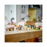 Postavte si farebné vozidlo s odpojiteľným prívesom a vydajte sa na výlet do prírody. Deti si osvoja základy stavania a užijú si realistické scénky s prepravou koní.