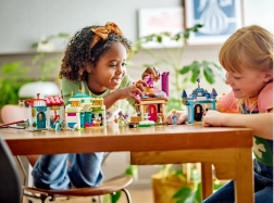 Postavte si štyri okúzľujúce budovy so zladenými farbami a dekoráciami, menšiu zónu s kvetináčom, lavičkou a fontánou a objavte skryté prekvapenia, ktoré inšpirujú k vymýšľaniu nových príbehov.