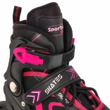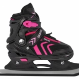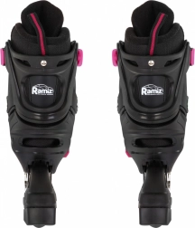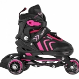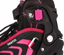 Trojité zapínanie (šnúrky, suchý zips, pracka s istením) drží chodidlo pevne na mieste. Brzda na pravej korčuli pre rýchle zastavenie.