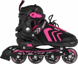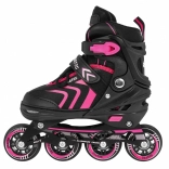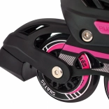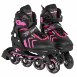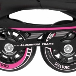 Bezpečné utiahnutie zaistí trojité zapínanie: šnurovanie, pás na suchý zips a mikro-pracka s istením proti nechcenému otvoreniu. Pravá korčuľa je vybavená brzdou pre isté zastavenie. Hliníkový rám poskytuje stabilitu a presné vedenie, zatiaľ čo ložiská ABEC 7 a kolieska z PU 72×24 mm (tvrdosť 85A) garantujú plynulú a tichú jazdu.